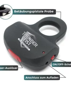 Erleben Sie die Zukunft der Selbstverteidigung. Mit erstaunlichen 25.000.000 Volt Leistung liefert der ThunderFist eine leistungsstarke Abschreckung in einem kleinen Paket. Ein einfacher Druck genügt, um es zu aktivieren, wodurch es schneller und zuverlässiger ist als herkömmliche Selbstverteidigungswerkzeuge.