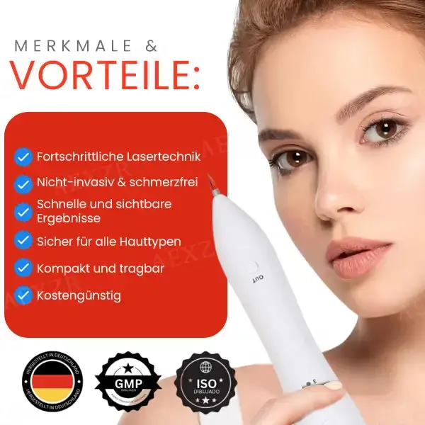 ✅ Schnelle und langanhaltende Ergebnisse – Erleben Sie sichtbare Verbesserungen in nur 3 Tagen. Bei konsequenter Anwendung verblassen Hautanhängsel, dunkle Flecken und Unreinheiten dauerhaft. Unsere fortschrittliche Lasertechnologie sorgt für eine dauerhafte Hautverjüngung ohne wiederkehrende Hautprobleme.