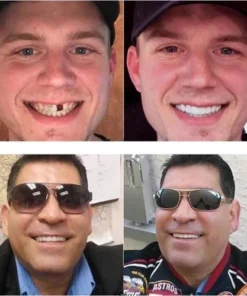 ✔️ Nu kunt u uw glimlach verbeteren zonder uw tanden recht te trekken – Het gebeurt allemaal rechtstreeks vanuit het laboratorium, zonder dat u een bezoek aan de tandarts hoeft te brengen. Nieuwe technologie heeft verwijderbare tandheelkundige veneers ongelooflijk betaalbaar gemaakt. Hervorm en corrigeer het uiterlijk van uw glimlach: openingen tussen de tanden, ontbrekende tanden, gebarsten tanden, gebroken tanden, scheve of niet goed uitgelijnde tanden.