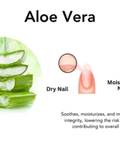 Aloe Vera: hat beruhigende und feuchtigkeitsspendende Eigenschaften, die Trockenheit und Reizungen im Bereich der Nägel lindern können. Durch die Bereitstellung von Feuchtigkeit hilft Aloe Vera, die Integrität des Nagelbetts zu erhalten und das Risiko des Abschälens zu verringern. Seine beruhigende Wirkung trägt auch zur allgemeinen Nagelgesundheit bei.