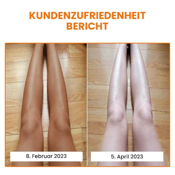 “Nach vier Wochen konsequenter Anwendung hat sich die Haut um meine Knie herum aufgehellt, sie ist weicher und glatter geworden. Es ist auch erwähnenswert, dass ich während der Anwendung dieser Lotion keine Hautreizungen verspürt habe; sie ist sehr sanft und nicht scheuernd auf der Haut. Ich liebe sie!”