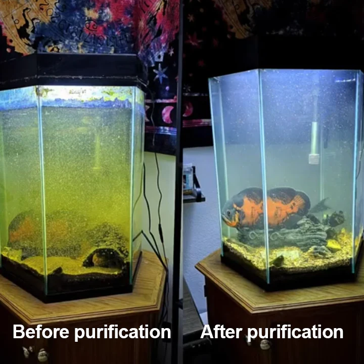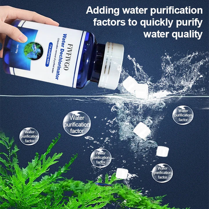 Our Fivfivgo™ Water Dechlorinator-Powerful Purify Tablets is a comprehensive solution that creates a healthy environment for fish. It removing chlorine, chloramine, and other harmful chemicals, maintaining optimal pH levels, and introducing beneficial microorganisms. The proprietary AquaPure Blend and ChloroGuard Complex work together to purify the water, while Purisoft Crystals soften and clarify the water. With AquaShield Probiotics, the water is populated with beneficial bacteria that support the health and well-being of fish.