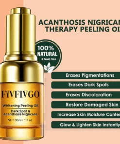 - Its formula can help to remove dead skin cells, lighten hyperpigmented areas, and improve the texture and appearance of the skin. Making Fivfivgo™ Whitening Peeling Oil for Dark Spot & Acanthosis Nigricans a popular choice for treating acanthosis nigricans.