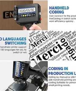 - 60-degree print hight quality text graphics, and a variety of bar codes, including picture, QR codes, production date, LOGO, batch number, Logo, etc.