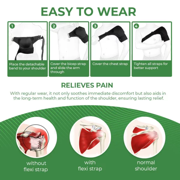 8. Is my shoulder support better than massage or physical therapy? Yes, the FlexiStrap® shoulder support offers comfort and affordability. Unlike expensive chiropractic or physical therapy sessions, you make a one-time purchase and can use it whenever and wherever you need. Additionally, while massage and physical therapy provide temporary relief for a limited time, our shoulder brace offers consistent support when you need it.