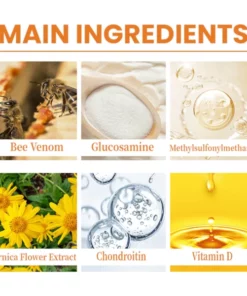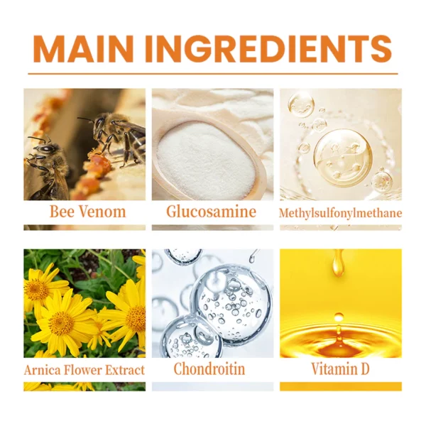 • Key Ingredients: Bee Venom, Glucosamine, Chondroitin, Vitamin D, MSM, Arnica Flower Extract
