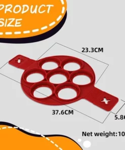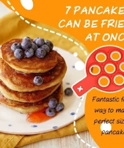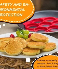 This Nonstick Pancake Mold has 7 round rings, separate food from each ring which diameter is 3in, fantastic fast way to make perfect sized pancakes.
