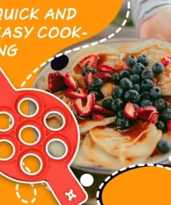Just place in preheated pan add batter and let them brown then simply lift and flip. The secret is the non-stick, silicone ring. The side holds the batter to the perfect shape for even cooking, while the flat bottom ring supports everything. Stovetop safe silicone while the easy flip grips keep hand away from the heat.
