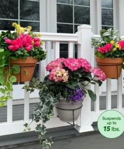 Sturdy, wind resistant, and easy to install, this railing planters shelf use a combination of tension and grip to suspend fifteen pounds at any elevation or support twenty-five-pound planters at the foot of the railing, it is made from high-quality, durable materials that can withstand the elements and last for years.