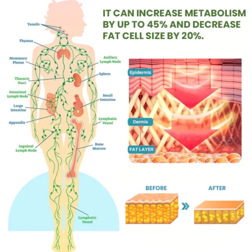 Good lymphatic drainage helps reduce fat by removing waste. It can increase metabolism by up to 45% and decrease fat cell size by 20%.