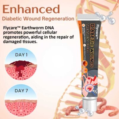 FLYCARE™ Diabetes Wound Treatment Cream works by stimulating cell regeneration and tissue repair. Featuring Earthworm DNA, a natural ingredient known for its exceptional regenerative abilities, this powerful DNA accelerates the healing process, making severe diabetic wounds heal up to 10 times faster.