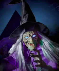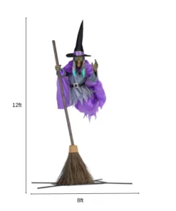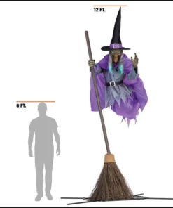 Designed for outdoor use, this 12-foot flying witch animatronic is the perfect centerpiece for any Halloween party.