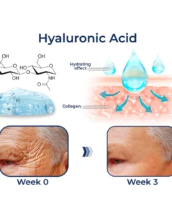 HA (Hyaluronic Acid) has a remarkable capacity to hold and retain water molecules. When it binds to water and NMN, it provides a cushioning and hydrating effect. This results in a reduction in the appearance of fine lines and wrinkles.