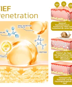 Ein hochwertiges Blatt, beschichtet mit Hydrogel und mit 5.000 ppm Schneckensekretionsfiltrat (SSF) wird in Korea hergestellt. SSF ist von Natur aus reich an Kollagen, Elastin, Allantoin und Glucuronsäure, die dazu beitragen können, das Kollagen wieder aufzufüllen, den Zellstoffwechsel und die Zellregeneration anzukurbeln, geschädigtes Hautgewebe zu reparieren, Falten und Narben zu reduzieren und die Haut vor Schäden durch freie Radikale zu schützen.