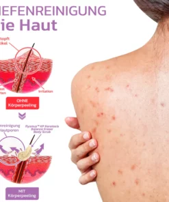 Durch den Einsatz von milden Peelingmitteln und reinigenden Komponenten ermöglicht dieses Produkt eine gründliche Reinigung der Haut. Das Peeling löst und entfernt abgestorbene Hautzellen, löst verstopfte Poren und entfernt überschüssiges Öl und Verunreinigungen von der Hautoberfläche. Es enthält Tenside, die zusätzlich zur Reinigung der Haut beitragen, indem sie Öl und Schmutz emulgieren und so deren Entfernung vereinfachen. Die konsequente Anwendung des flysmus™ KP Keratose Gleichgewicht Radiergummi Körper Peeling trägt dazu bei, die Haut sauber, klar und frei von Unreinheiten zu halten.