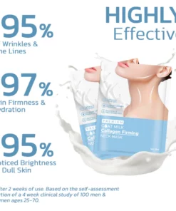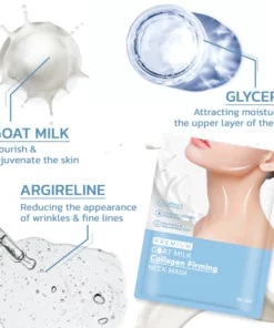 Die flysmus™ Premium Goat Milk Collagen Firming Neck Mask ist ein speziell formuliertes Hautpflegeprodukt, das die Haut im Halsbereich straffen und festigen soll. Die Maske enthält eine Mischung aus natürlichen Inhaltsstoffen, darunter Ziegenmilch, Kollagen und Peptide, die zusammenwirken, um die Haut zu nähren und zu verjüngen und gleichzeitig die Zellerneuerung und Kollagenproduktion zu fördern.