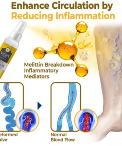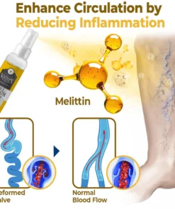 VaricoX Vein Bee Venom Spray utilizes the potent therapeutic properties of Bee Venom to effectively address varicose veins. Enriched with the enzymes of Phospholipase A2 and Melittin, it is scientifically supported for its ability to reduce inflammation, improve circulation, and break down fibrin, offering targeted relief for varicose veins.