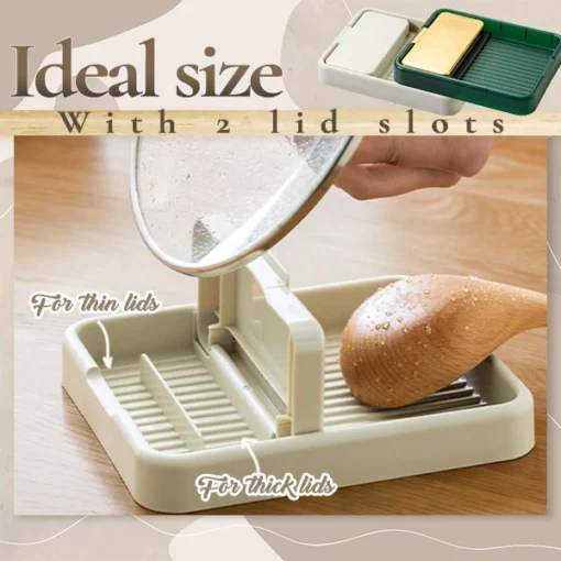 This handy tray-style holder features a smart support stand and spatula area where you can neatly rest your pot lids and utensils. It successfully collects every drop of water, oils, sauces, and moisture from your tools and is deep enough to prevent spilling. Allowing you to keep your necessary cooking items at hand while maintaining your countertops organized and 100% drip-free! This rack can accommodate almost all different lid sizes and it can even hold utensils such as spoons, forks, chopsticks, serving spoons, tongs, ladles, and so on.