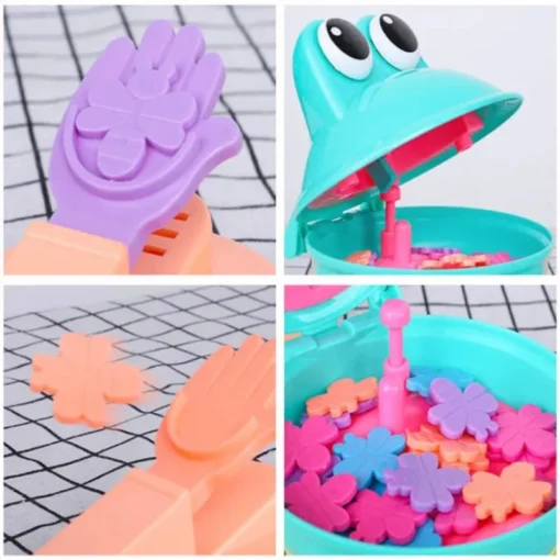 Watch as Frog’s comical head hilariously opens, closes, and spins in energetic motions. Time your bug-flinging skills with precision to feed this ravenous amphibian!
