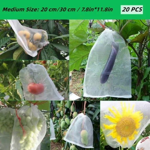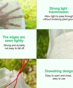 Drawstring design: With rope on the edge, the nylon protect bags are easy to install and ensure that the protective bag perfectly covers plants and enhanced protection. Adjustable pocket design meets the needs of different growth stages of fruit.