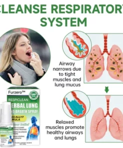 Furzero™️ RespiClean Herbal Lung and Breath Spray is specifically formulated to address conditions such as asthma, bronchitis, bronchial expansion, smoking-related issues, colds and flu, allergies, chronic obstructive pulmonary disease (COPD), pneumonia, coughing, emphysema, lung mucus, pulmonary fibrosis, chronic sinus pulmonary disease, and more.