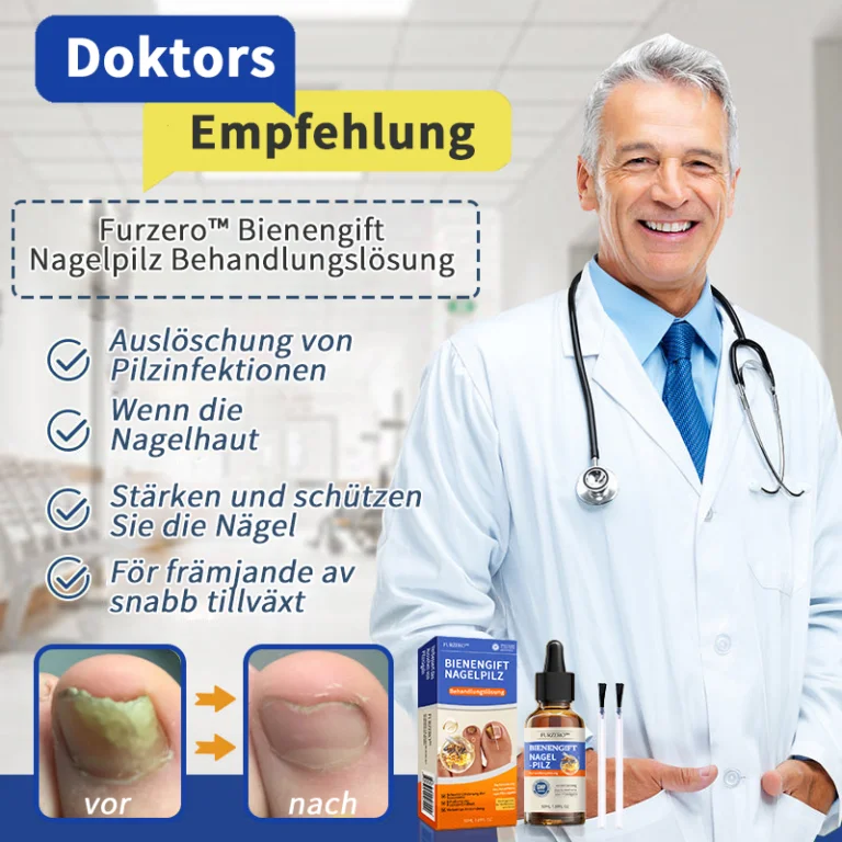 Furzero™ Bienengift Nagelpilz Behandlungslösung ist eine kraftvolle Lösung zur Behandlung verschiedener Nagelprobleme. Alle Zutaten stammen aus natürlichen Pflanzen, formuliert mit aktivem Bienengift und natürlichen Extrakten. Dieses Serum dringt tief in die Nägel und die Nagelhaut ein, beseitigt hartnäckige Pilze, verbessert die Nagelgesundheit und fördert das schnelle Nagelwachstum. Seine starken antibakteriellen und antimykotischen Eigenschaften verhindern effektiv Infektionen und stärken die Nägel, wodurch sie widerstandsfähiger werden. Einfach zu verwenden und hochwirksam, ist Furzero™ eine sichere, natürliche und nicht-invasive Methode, um gesunde und schöne Nägel zurückzugewinnen.