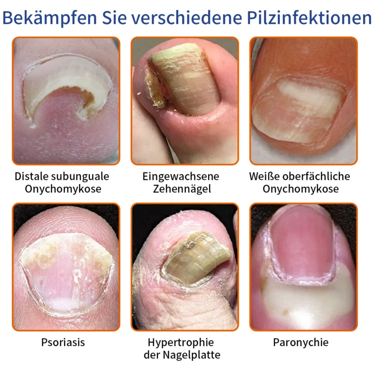 Zehenkrankheiten umfassen Zustände, die durch Bakterien, Pilze, Viren, Verletzungen und genetische Faktoren verursacht werden. Diese umfassen Pilzinfektionen, Paronychie, schwarze Linien auf den Zehennägeln, Onychomykose und unregelmäßiges Zehennagelwachstum. Jede dieser Probleme kann die Gesundheit und das Erscheinungsbild der Zehennägel beeinträchtigen.