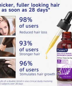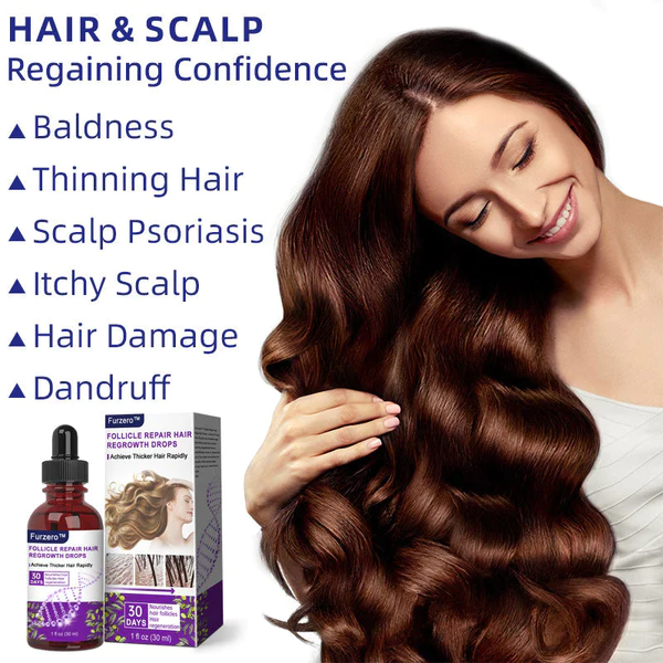 Furzero™ Follicle Repair Hair Regrowth Drops are an extremely powerful and affordable solution that harnesses the power of premium ingredients to boost blood circulation to hair follicles, fight hair disease, improve hair softness and antioxidant resistance, and reduce symptoms of scalp inflammation. It is a comprehensive solution for hair loss, thinning hair, baldness, scalp psoriasis, fungal infections, itchy scalp or damaged hair, and is safe to use, FDA-approved, and will not cause any allergic reactions or side effects. It provides the essential nutrients needed for hair growth and a healthy scalp, making Furzero an excellent care and treatment solution!”