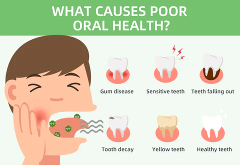 Every day, food residues in our mouths create a breeding ground for various bacteria and microorganisms within the oral cavity. This can result in a range of oral health issues, including bad breath, mouth ulcers, yellow teeth, cavities, calculus buildup, gum inflammation, bleeding gums, tooth sensitivity, weakened or missing teeth, swollen gums, toothaches, loose teeth, tooth loss, and even the risk of oral cancer.