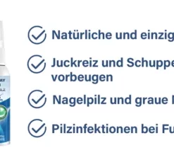 Dieses von Dermatologen und Apothekern empfohlene medizinische Anti-Pilz-Fußspray besteht aus 100 % hochwertigen, natürlichen Inhaltsstoffen in medizinischer Qualität!