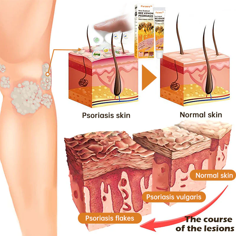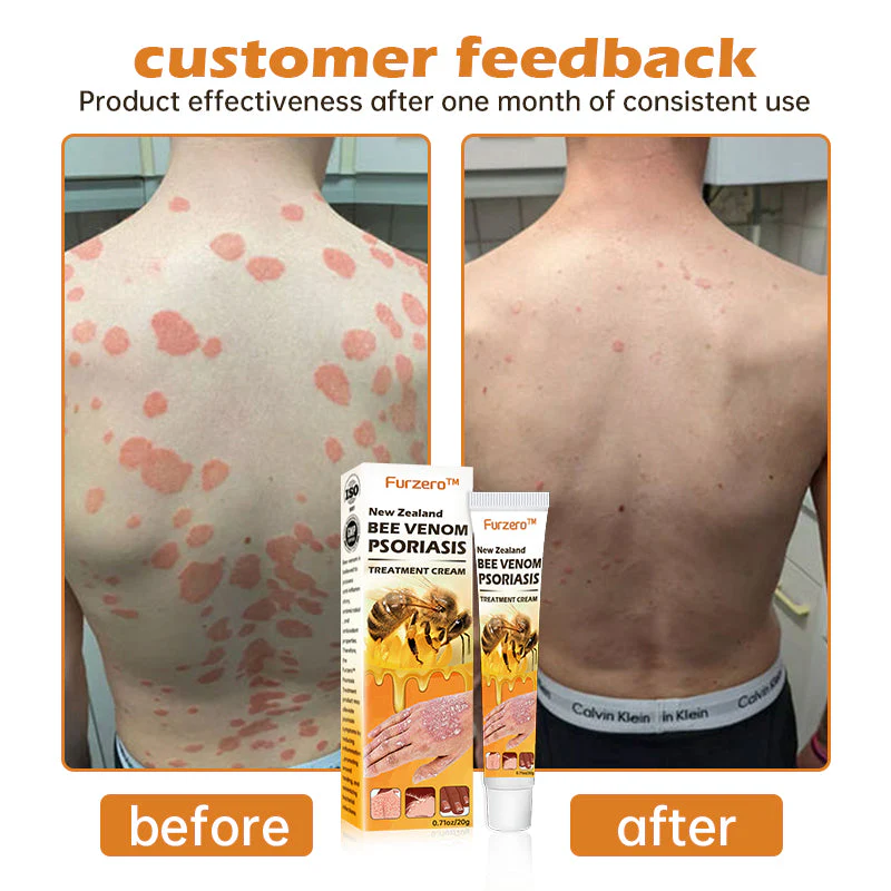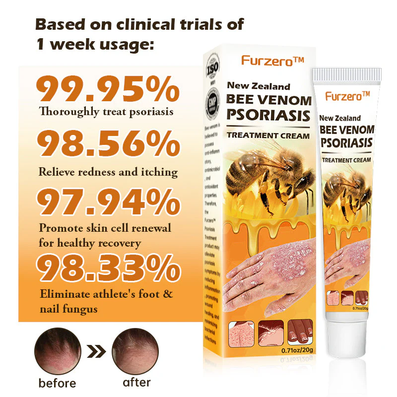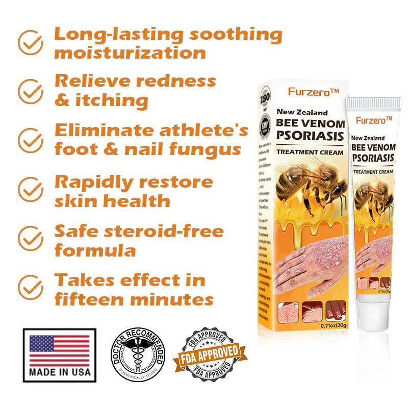 Furzero™ New Zealand Bee Venom Psoriasis Treatment Cream cleanses the skin from the inside out, alleviating itching and inflammation. It is free from irritating chemicals and does not exacerbate already damaged skin. Furzero™ helps minimize the growth of skin cells triggered by psoriasis, providing relief from inflammation, itching, and scaling associated with this condition.