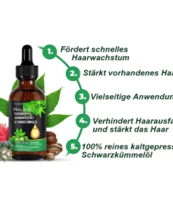 Schwarzes Rizinusöl ist ein vielseitiges Produkt, das wegen seiner zahlreichen Vorteile weit verbreitet ist. Es fördert das Haarwachstum, reguliert den Ölgehalt der Kopfhaut und verbessert die Blutzirkulation, was letztendlich das gesunde Haarwachstum unterstützt. Es nicht nur das Haar nährt und hydratisiert, sondern es hilft auch, Anzeichen von Hautalterung zu bekämpfen, wenn es topisch aufgetragen wird. Darüber hinaus kann schwarzes Rizinusöl dazu verwendet werden, Nägel zu pflegen und zu stärken, wodurch es zu einem wertvollen Schönheitsmittel für vielfältige Anwendungen wird.