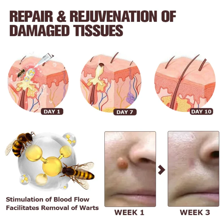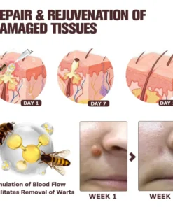 Another significant advantage of bee venom is its ability to enhance blood circulation. It can stimulates blood flow in the treated area, facilitating the removal of skin tags or warts by promoting tissue regeneration and accelerating the healing process, aiding in the repair and rejuvenation of damaged tissues.