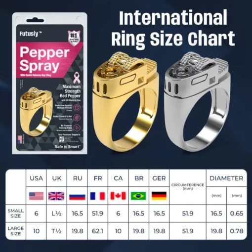 The Futusly™ Speederupt 30 Bursts Pepper Spray Ring stands as an ideal companion for those seeking an easily accessible personal protection device. Say goodbye to hassles and fumbling through purses or pockets – simply remove the safety and spray. This elegant self-defense ring, complete with pepper spray, provides a blend of safety, sophistication, and confidence at your fingertips. It makes for a thoughtful and practical gift, embodying care and consideration for the safety and protection of your loved ones.