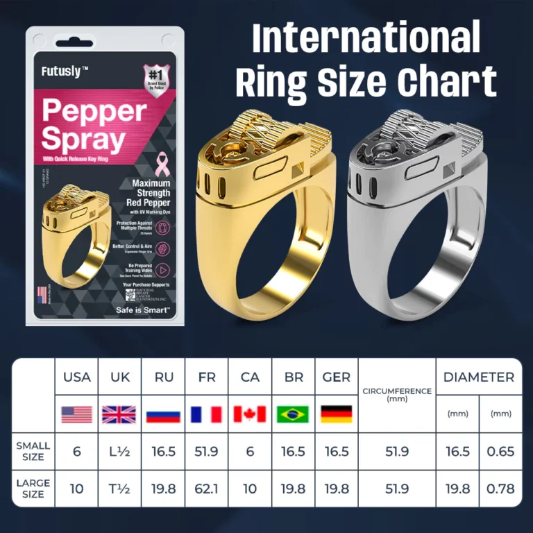 A discreet and camouflaged option for personal protection is the pepper spray ring. The Futusly™ Speederupt 30 Bursts Pepper Spray Ring serves to deter potential attackers and safeguard you in case of an assault. The replaceable pepper spray canisters make maintenance easy, and the ring can be comfortably worn on either the first (index) or second finger of your dominant hand. Ensuring accessibility, the thumb (or alternate hand if needed) can readily operate the safety latch and trigger. Pepper spray rings are an excellent choice for concealed carry and provide a reliable option for emergency situations.