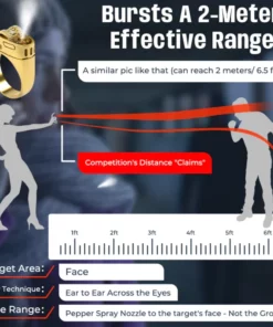 Beneath the stylish exterior of the Futusly™ Speederupt 30 Bursts Pepper Spray Ring lies a formidable defense mechanism. This accessory utilizes the market’s strongest pepper spray formula, designed to incapacitate attackers effectively. Upon contact, the formula targets mucous membranes, causing immediate and severe effects. From inflammation in the eye capillaries to respiratory distress, the assailant experiences temporary visual impairment, difficulty breathing, coughing, choking, sneezing, and intense burning sensations. These acute symptoms, lasting for approximately 45 minutes, make the Futusly™ Speederupt 30 Bursts Pepper Spray Ring an unparalleled choice for those prioritizing both style and personal safety.