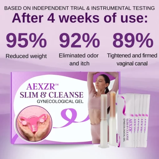 - Slimming: AEXZR™ Slim & Cleanse Gynecological Gel can help to boost metabolism, suppress appetite, and reduce bloating and water retention, leading to weight loss and a slimmer, healthier-looking body.