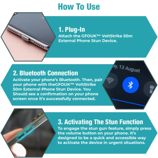 Usage Directions For GFOUK™️ VoltStrike 50m External Phone Stun Device