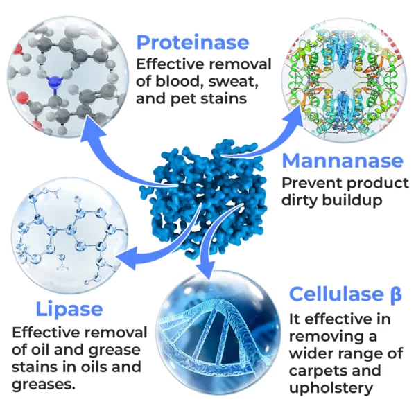 Enzyme shields against fading, discoloration and cracking caused by damaging UV rays, offering up to 6 months of protection.