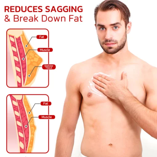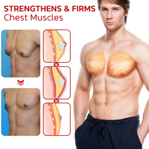 The GFOUK™️ MACAFORCE Black Maca Gynecomastia Firming Cream aids in effectively toning and enhancing chest muscles, comparable to a gym workout, and its swift muscle-firming action contributes to a more sculpted and toned appearance while addressing the issue of “man boobs”.