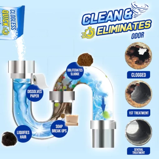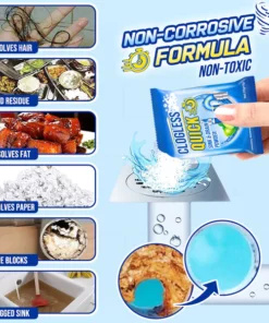 With its fast-acting formula, GFOUK™ Clogless Quick Sink and Drain Powder offers a hassle-free and eco-friendly way to maintain your plumbing systems, ensuring that water flows freely and your daily routines remain uninterrupted. Say goodbye to the inconvenience of stubborn clogs and hello to a cleaner, more efficient drainage system.