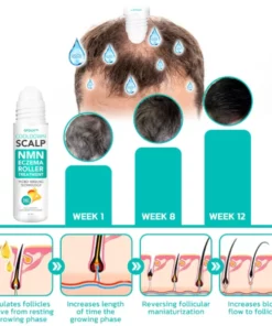Scientific research indicates that NMN is essential for promoting healthy hair growth by supporting the energy production of hair follicle stem cells. Leveraging this knowledge, the GFOUK™ CooldownScalp Eczema Treatment Roller harnesses the power of NMN to deliver its benefits directly to your scalp, offering an advanced solution for enhancing hair growth. GFOUK™ CooldownScalp Eczema Treatment Roller is effective prevention of hair loss through the treatment of dermatitis.