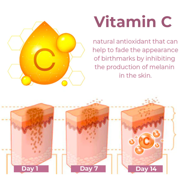 GFOUK™ German Birthmark Removal Oil enthält Inhaltsstoffe, die dazu beitragen können, die Produktion von Melanin in der Haut zu hemmen, das für die Hautpigmentierung verantwortlich ist. Es hilft auch, die Haut aufzuhellen und das Erscheinungsbild von pigmentierten Muttermalen mit der Zeit zu verblassen. Vitamin C ist ein natürliches Antioxidans, das die Melaninproduktion in der Haut hemmt und so das Erscheinungsbild von Muttermalen verblassen lässt. Melanin ist das Pigment, das Haut, Haaren und Augen Farbe verleiht, und eine Überproduktion von Melanin kann zu pigmentierten Muttermalen führen.