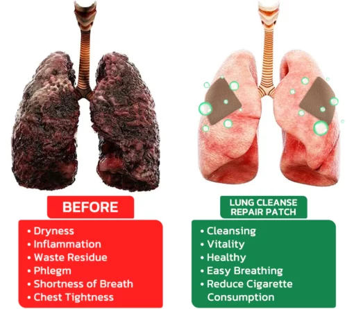 The GFOUK FreshAir Herbal Lung Cleanse Repair Patch works by utilizing its unique design and natural plant extracts. When applied to the skin, it absorbs the extracts to alleviate stress-induced allergies and support respiratory health. It reduces allergy symptoms and helps eliminate waste and excess mucus from the lungs, improving lung function.