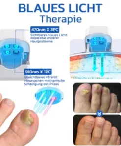 Das GFOUK™ FungusOFF Nagellaser-Behandlungsgerät bietet eine innovative Lösung für die effektive Bekämpfung von Nagelpilz in der Bequemlichkeit Ihres eigenen Zuhauses. Mit seiner einzigartigen Kombination aus 470nm- und 910nm-Lasern, einschließlich eines unsichtbaren Lasers, bietet dieses Gerät eine bequeme und diskrete Option zur Behandlung von Pilzinfektionen der Zehennägel und Fingernägel und ist damit ein vielversprechendes Werkzeug für alle, die einen nicht-invasiven und zugänglichen Ansatz für die Nagelgesundheit suchen.