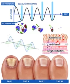 Die Blaulichttherapie ist ein medizinisches Verfahren, bei dem blaues Licht mit einer spezifischen Wellenlänge von 470 nm zur Nagelbehandlung eingesetzt wird. Bei dieser Therapie werden die Nägel des Patienten genau dieser blauen Lichtwellenlänge ausgesetzt, die die äußere Schicht des Nagels durchdringen kann und im Keratin des Nagels eine photodynamische Reaktion auslöst. Diese Reaktion führt zur Bildung schädlicher freier Sauerstoffradikale, die Bakterien und Pilze in der Nähe des Nagels wirksam bekämpfen und zerstören können, wodurch entzündungsbedingte Infektionen reduziert und Symptome wie Rötung, Wärme und Schmerzen an der Entzündungsstelle gelindert werden. Wichtig ist, dass er die grundlegende Reparatur von Schäden erleichtern kann, ohne Nebenwirkungen oder Arzneimittelresistenzen zu verursachen.
