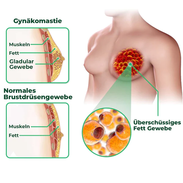 Gynäkomastie ist gekennzeichnet durch die Vergrößerung des Brustgewebes bei Männern. Sie entsteht durch eine hormonelles Ungleichgewicht, insbesondere ein erhöhter Östrogenspiegel im Verhältnis zu Testosteron. Zusätzlich, Gewichtszunahme und Fettleibigkeit kann zu einem Anstieg der Östrogenproduktion, da Fett selbst etwas speichern und umwandeln kann hormones, die dazu beitragen können Gynäkomastie.