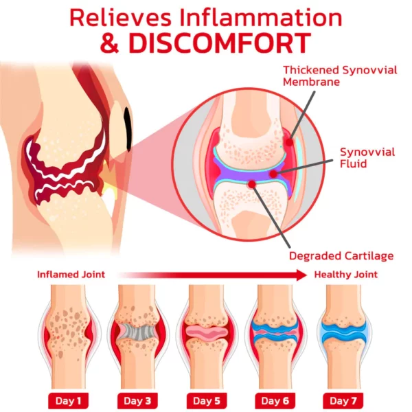 Upon application of the relief gel to the affected area, it permeates the skin and delivers its active components to the targeted joint. Working in synergy, these components effectively mitigate pain, inflammation, and promote the healing process.