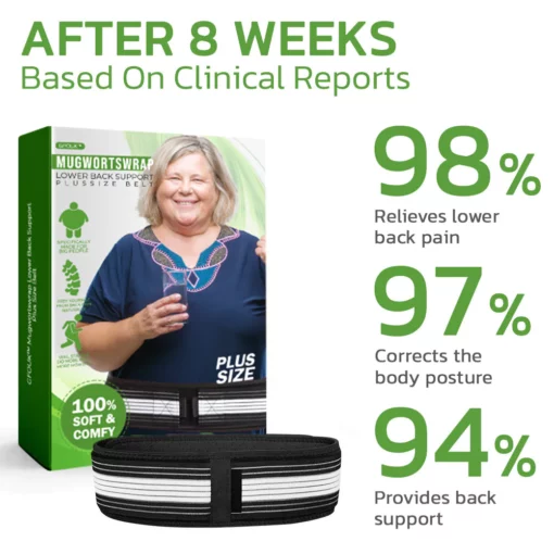 The GFOUK™ Mugwortswrap Lower Back Support Plus Size Belt utilizes the latest technology infused with mugwort to provide relief for lower back pain. This innovative belt enhances the efficient breakdown of fatty acids, resulting in a more comfortable, pain-relieved lower back without emphasizing weight loss.