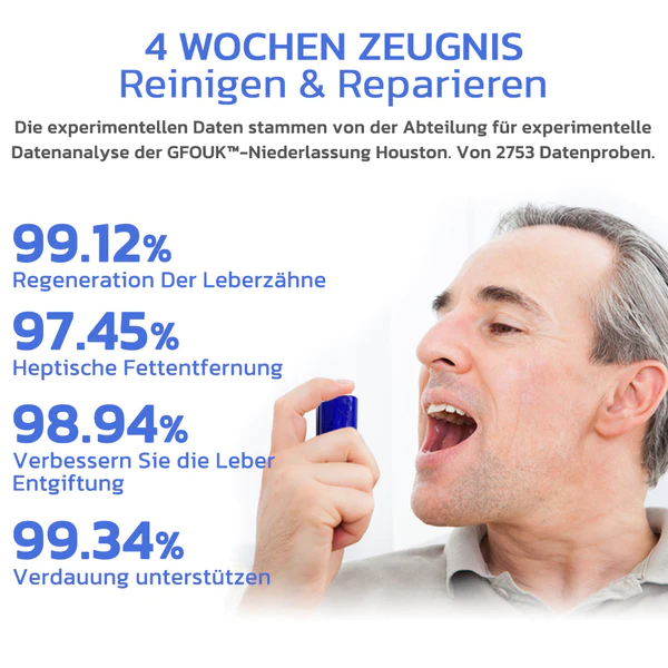 Während meiner Forschungsreise markierte das GFOUK™ OrganicLeaf Leberreinigung Detox Repair Spray einen wichtigen Meilenstein. Ich bin mit dem Ergebnis der Bemühungen unseres Teams wirklich zufrieden, da diese Innovation das Potenzial hat, einer größeren Anzahl von Menschen bei der Wiederherstellung einer optimalen Lebergesundheit zu helfen.